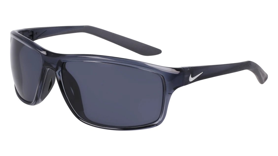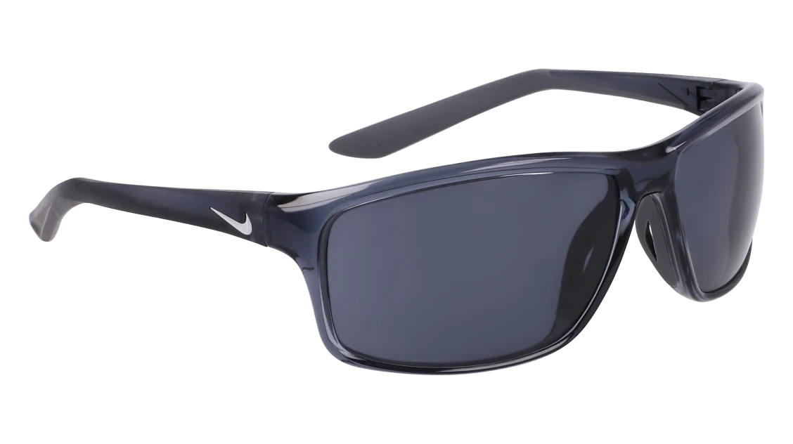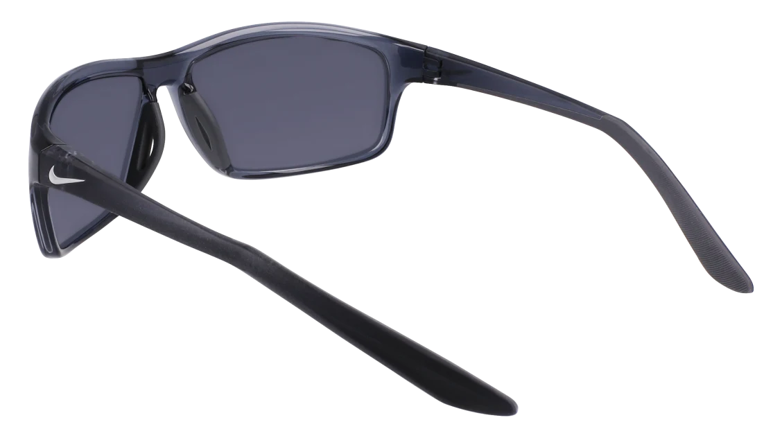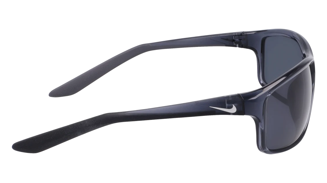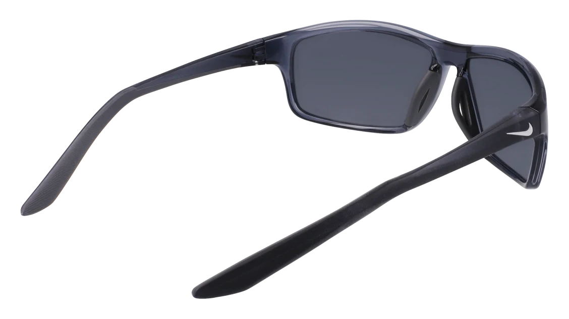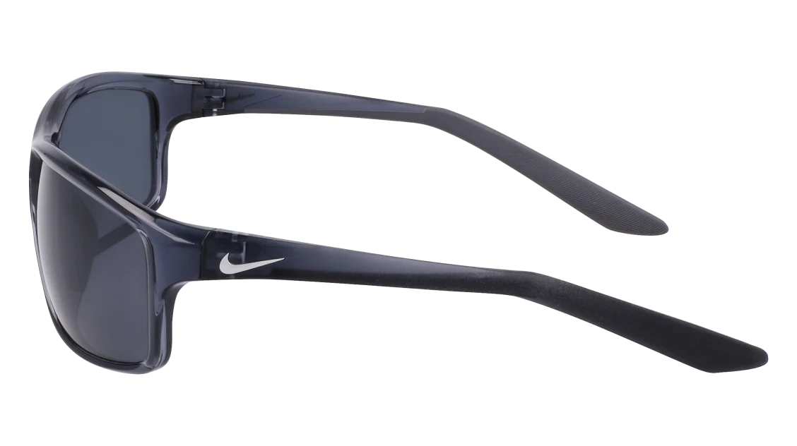 La montatura in grigio scuro è realizzata in nylon leggero e resistente, assicurando una vestibilità stabile anche durante il movimento. Le lenti grigie offrono protezione UV al 100%, riducendo l’abbagliamento e migliorando la nitidezza visiva. Il logo Nike Swoosh sulle aste aggiunge un tocco distintivo e autentico, simbolo di performance e innovazione.