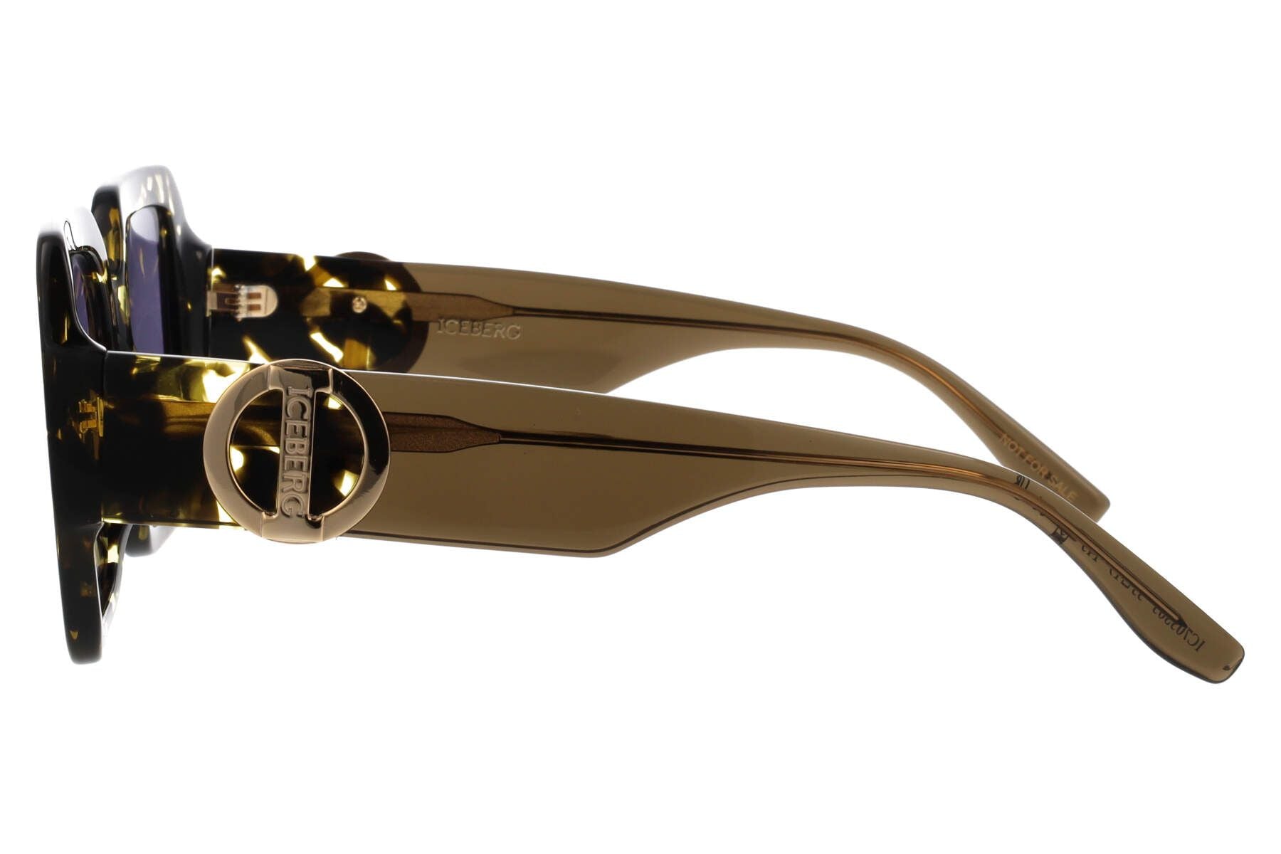 La montatura in acetato maculato nero e avana con aste spesse e logo Iceberg dorato laterale dona un tocco di lusso e originalità, mentre le lenti viola offrono protezione UV al 100%, garantendo comfort visivo e chiarezza ottimale in ogni condizione di luce. Il design geometrico e le linee decise valorizzano i lineamenti del viso, rendendo questo modello ideale per chi ama un’eleganza audace e moderna.