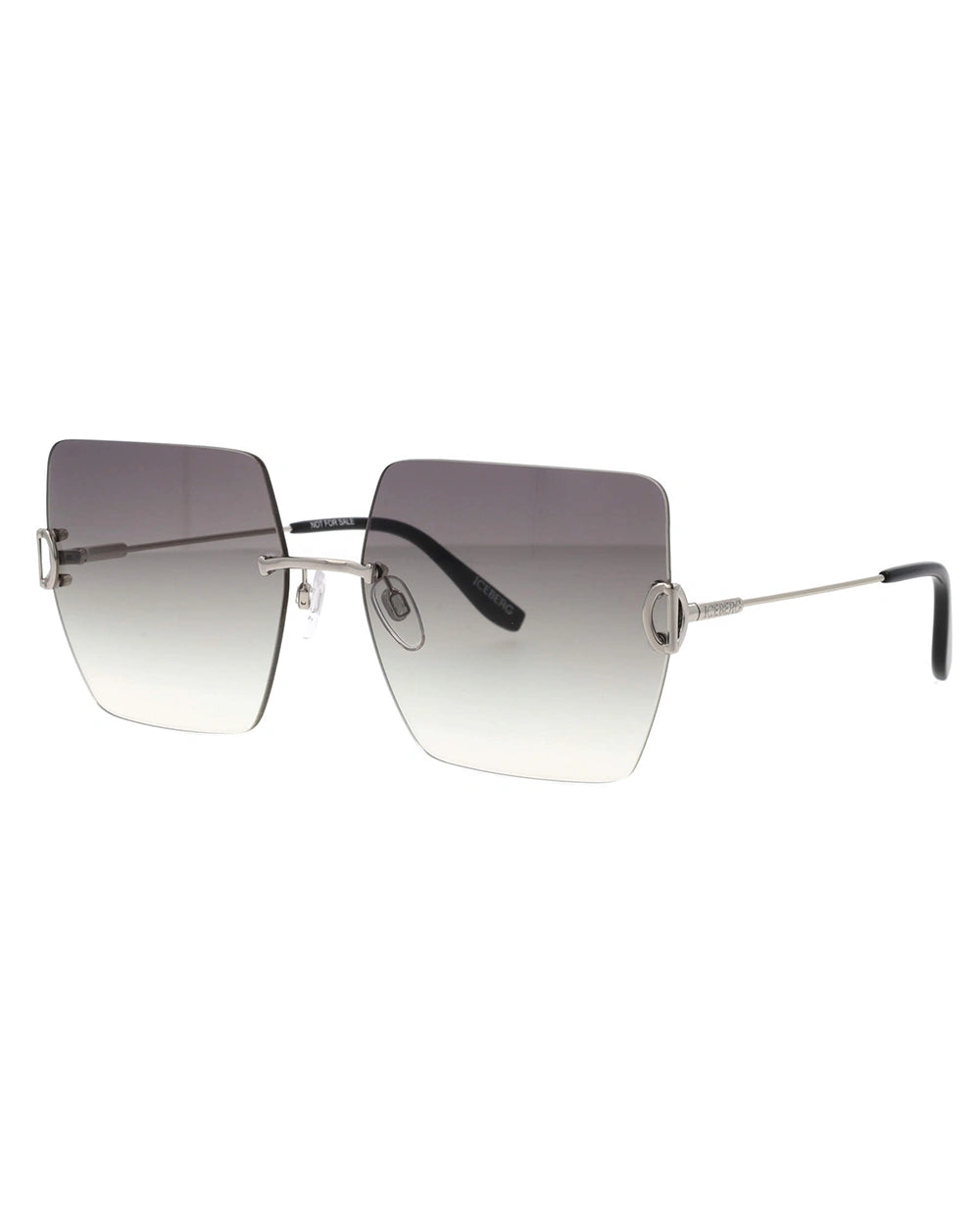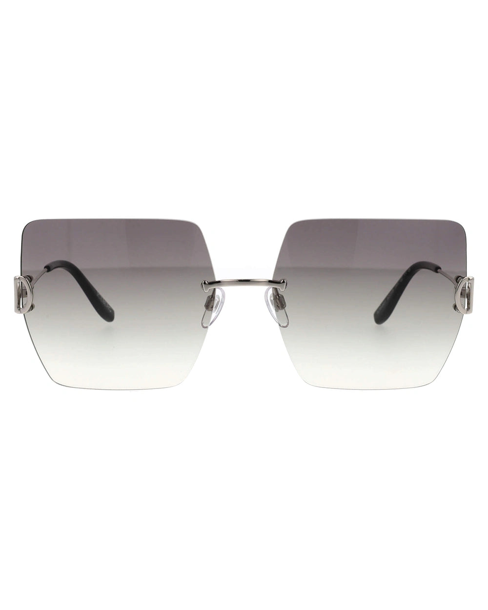 La montatura in metallo color argento con aste sottili e terminali neri offre leggerezza e comfort eccezionale, mentre le lenti grigio sfumato donano un tocco glamour e assicurano protezione UV al 100%, garantendo una visione nitida e confortevole in ogni condizione di luce. Il design minimalista e senza montatura frontale esalta la luminosità del viso, rendendo questo modello ideale per chi ama distinguersi con eleganza.