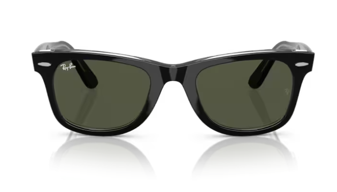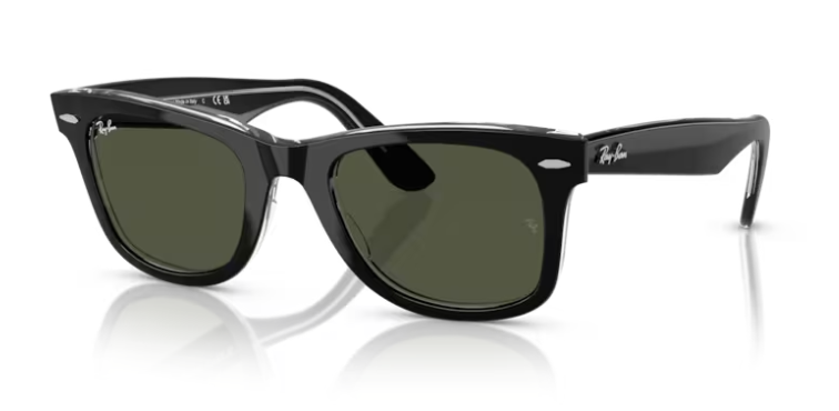 Ray-Ban RB2140 129431 Original Wayfarer – Occhiali da Sole Unisex in Nero Lucido con Lenti Verdi Classiche G-15