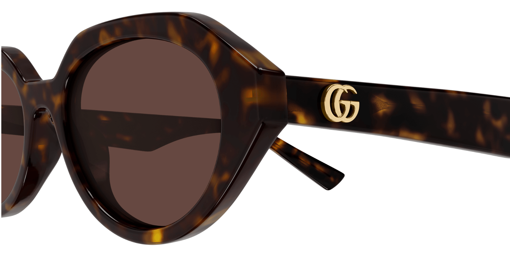 I Gucci GG2178S-002 incarnano un’estetica raffinata e contemporanea, perfettamente visibile nella foto: una montatura havana lucida con sfumature calde e naturali, abbinata a una forma geometrica morbida che valorizza il viso con eleganza.