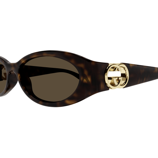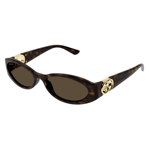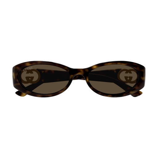 La forma cat-eye allungata dona un fascino femminile e deciso, mentre le aste spesse con logo GG dorato tridimensionale aggiungono un tocco di esclusività e riconoscibilità tipico del marchio Gucci. Le lenti marroni offrono protezione UV al 100%, garantendo comfort visivo e chiarezza ottimale in ogni condizione di luce.