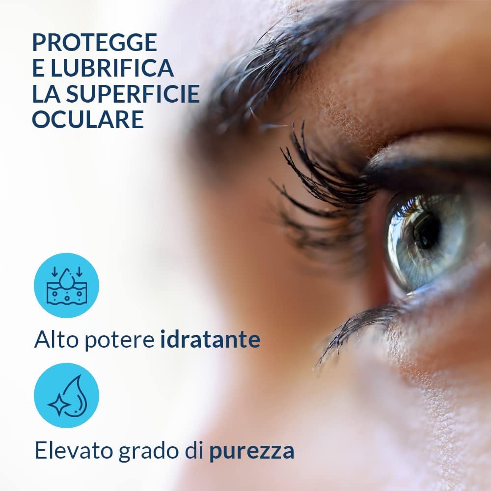 L’acido ialuronico garantisce un’azione idratante e viscoelastica prolungata, favorendo il comfort oculare e riducendo la sensazione di secchezza, bruciore o irritazione. Gli amminoacidi contribuiscono alla rigenerazione dei tessuti oculari e al mantenimento della stabilità del film lacrimale, proteggendo gli occhi dagli agenti esterni come vento, fumo, polvere e schermi digitali.