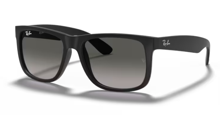 Ray-Ban RB4165 601/8G Justin – Occhiali da Sole Unisex in Nero Opaco con Lenti Grigio Sfumato