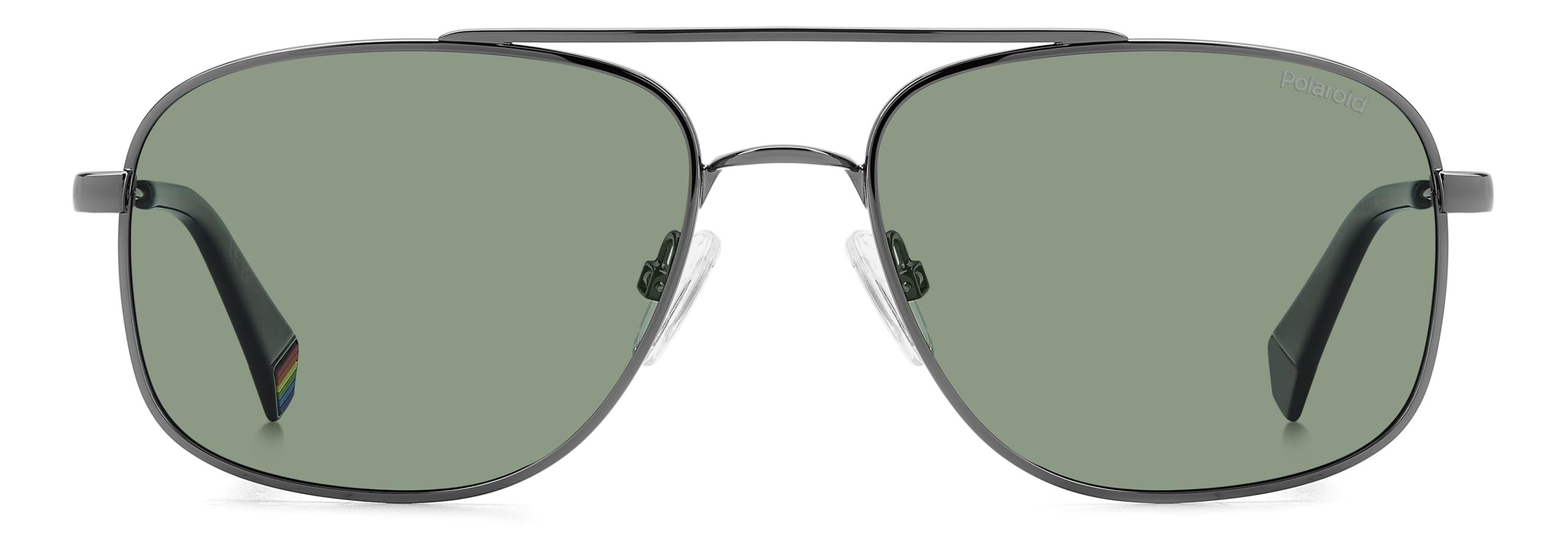 Le lenti polarizzate UltraClear garantiscono protezione UV al 100%, riducendo i riflessi e migliorando la nitidezza visiva anche in condizioni di forte luminosità. I naselli regolabili e le aste sottili con terminali ergonomici assicurano una vestibilità stabile e confortevole per tutto il giorno. Il dettaglio arcobaleno Polaroid sulle aste aggiunge un tocco distintivo e riconoscibile al design.