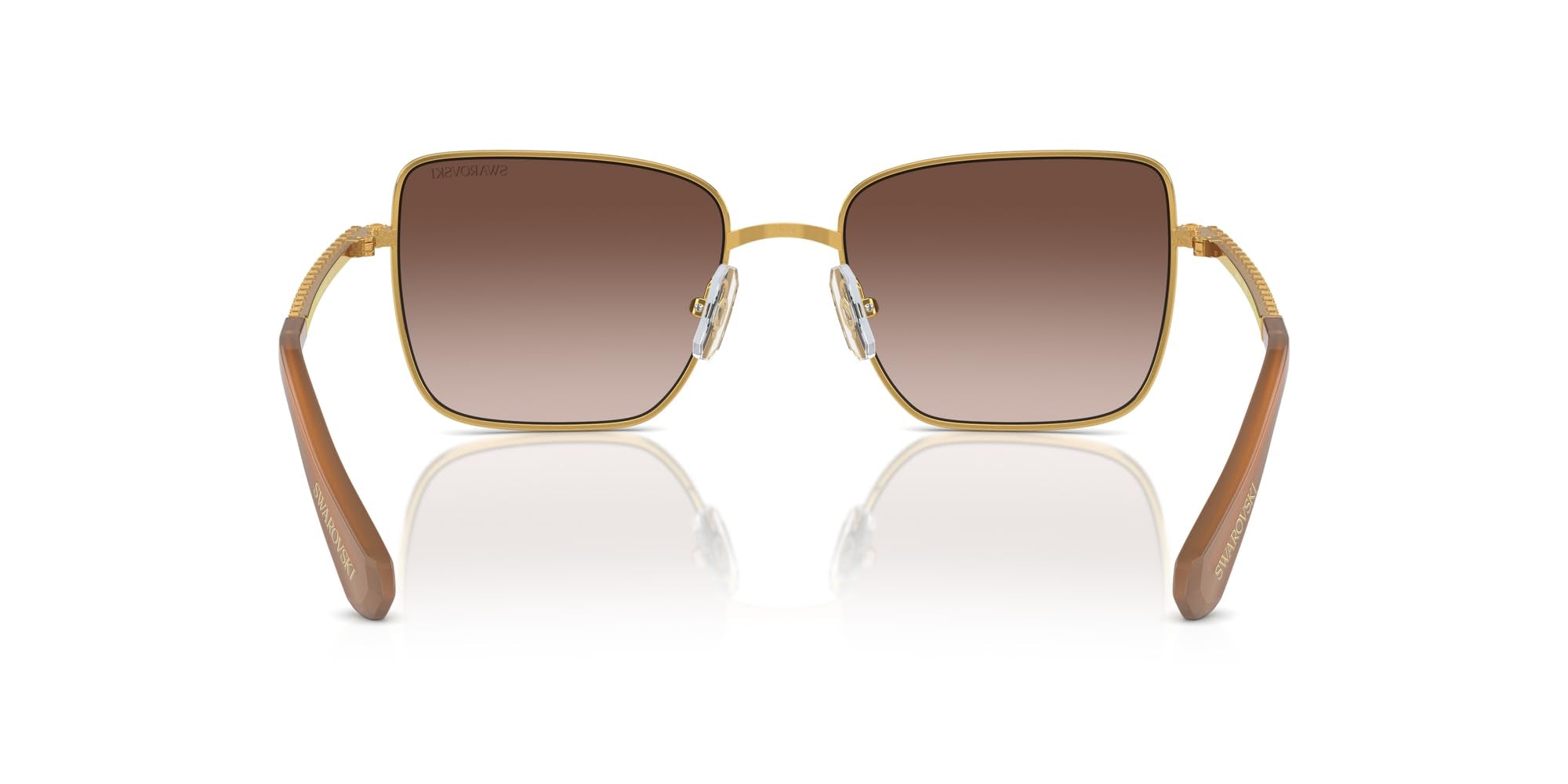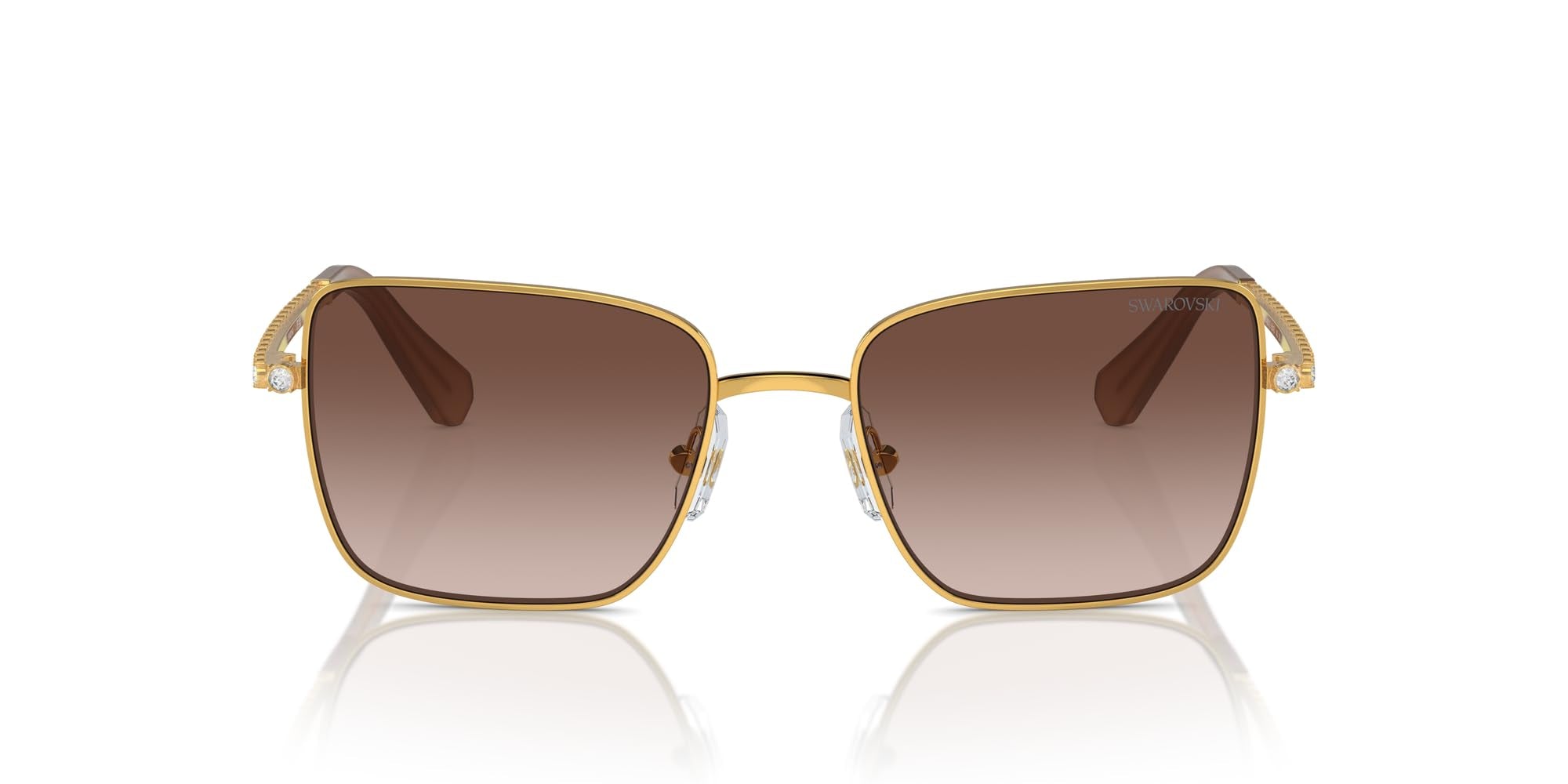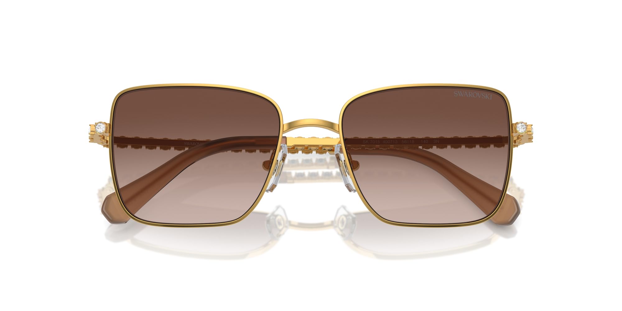 - CARATTERISTICHE DELLA MONTATURA: gli occhiali da sole SK7015 presentano una montatura quadrata oversize in oro giallo con lenti marroni sfumate e aste in cristallo pieno.