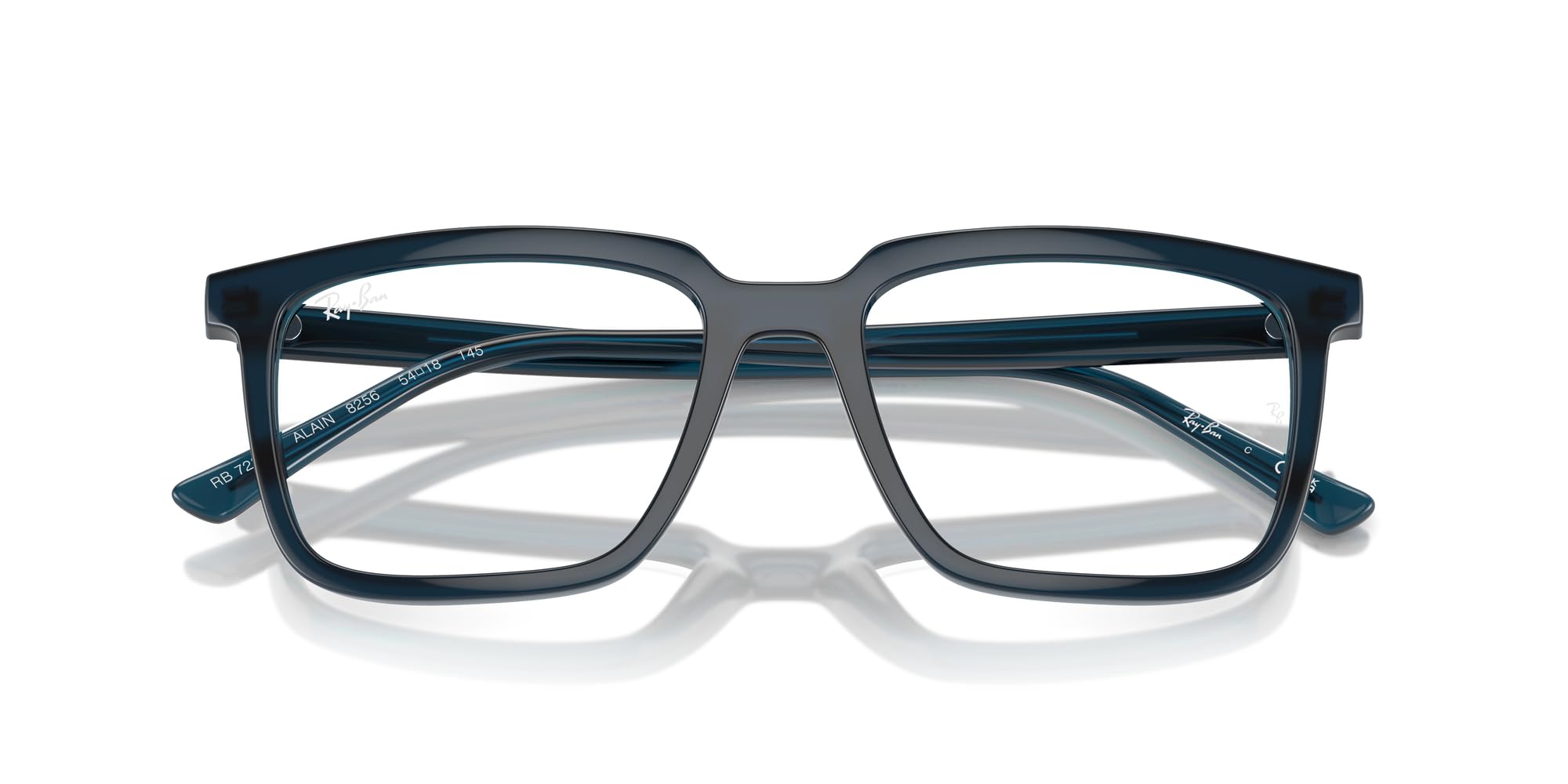 - Caratteristiche del telaio: le cornici per occhiali RX7239 Alain presentano una cornice rettangolare audace, opale blu scuro e barra angolare.
