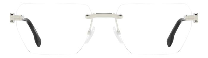 Realizzata in metallo color palladio, la montatura si distingue per la sua struttura senza cerchio (rimless) e la forma geometrica squadrata, che dona leggerezza e raffinatezza al viso. Le aste sottili con logo D2 in rilievo aggiungono un tocco esclusivo e riconoscibile, mentre i terminali neri e i naselli regolabili garantiscono una vestibilità confortevole e stabile per tutto il giorno.
