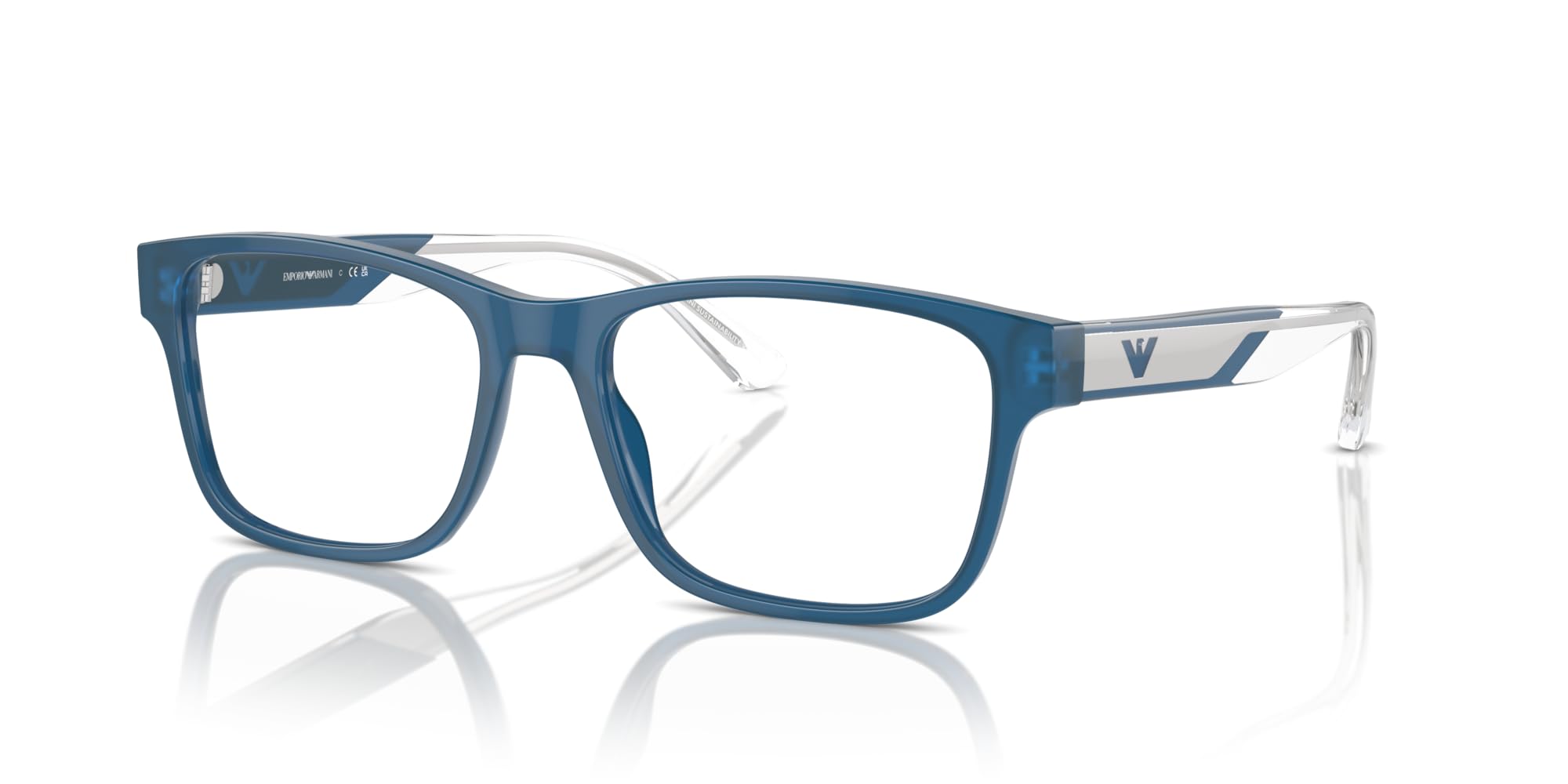 - CARATTERISTICHE DEL TELAIO: le montature per occhiali EA3239 hanno una montatura rettangolare lucida blu opalino. I frontali e i piedini in bio-acetato sono realizzati con un'alternativa sostenibile all'acetato standard grazie all'uso di plastificanti a base di fonti rinnovabili.