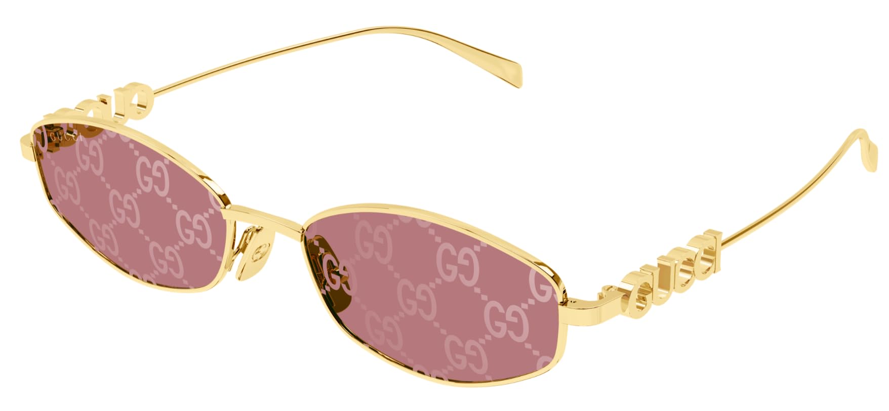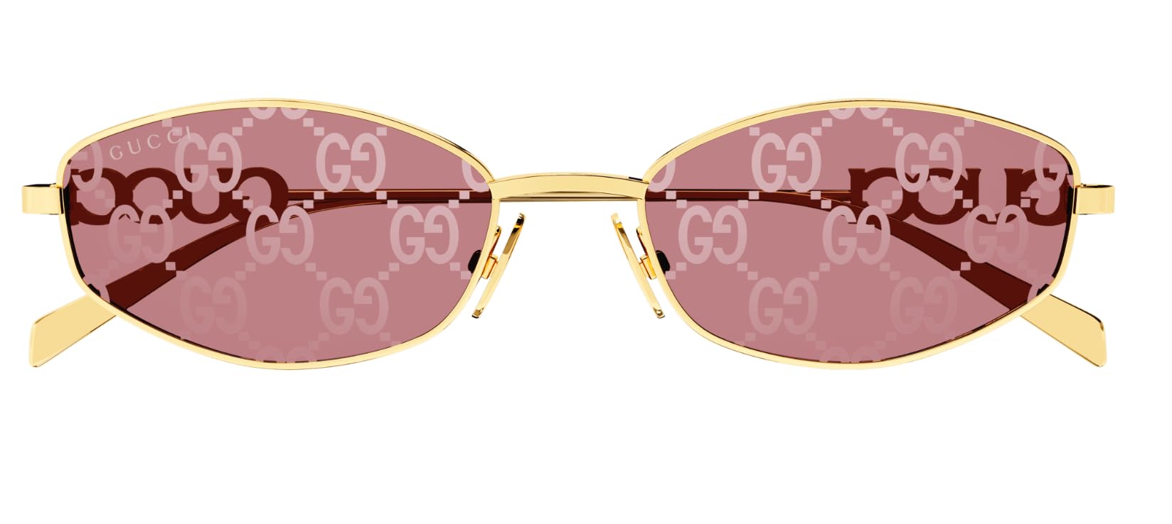 La montatura in metallo dorato impreziosita dal logo “GG” sulle aste valorizza ogni volto con un tocco di lusso discreto, mentre la forma panthos/oval conferisce stile senza tempo. Le lenti rosse / rubino con protezione categoria 3 offrono comfort visivo ottimale e schermatura efficace dai raggi UV.