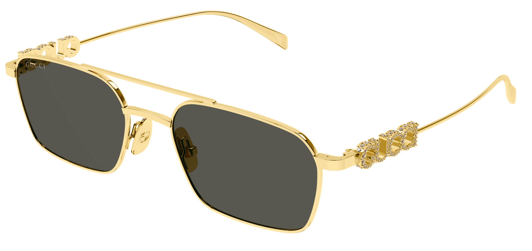 Le aste sottili sono impreziosite dal logo “Gucci Lettering” tridimensionale, un dettaglio che conferisce un carattere iconico e riconoscibile. Grazie ai materiali di alta qualità e alla struttura ben bilanciata, questi occhiali assicurano una calzata stabile e confortevole.